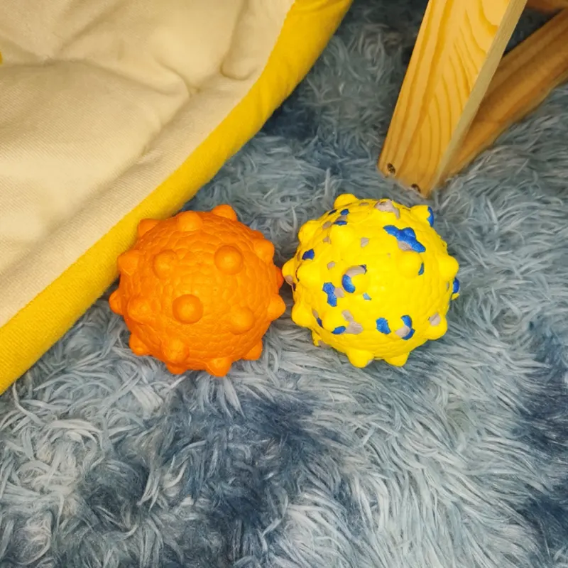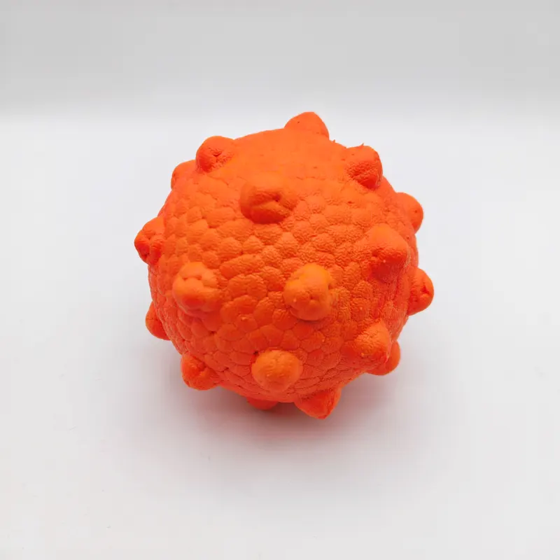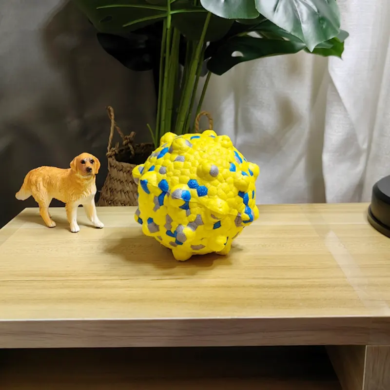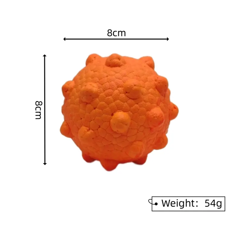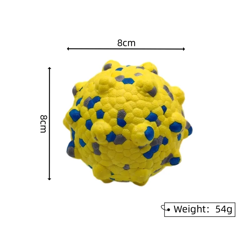 The ball's surface is adorned with numerous soft spikes, which serve as gentle bristles to clean your dog's teeth and massage their gums as they chew and gnaw on the toy. This unique design helps maintain their oral hygiene and supports healthy dental habits.