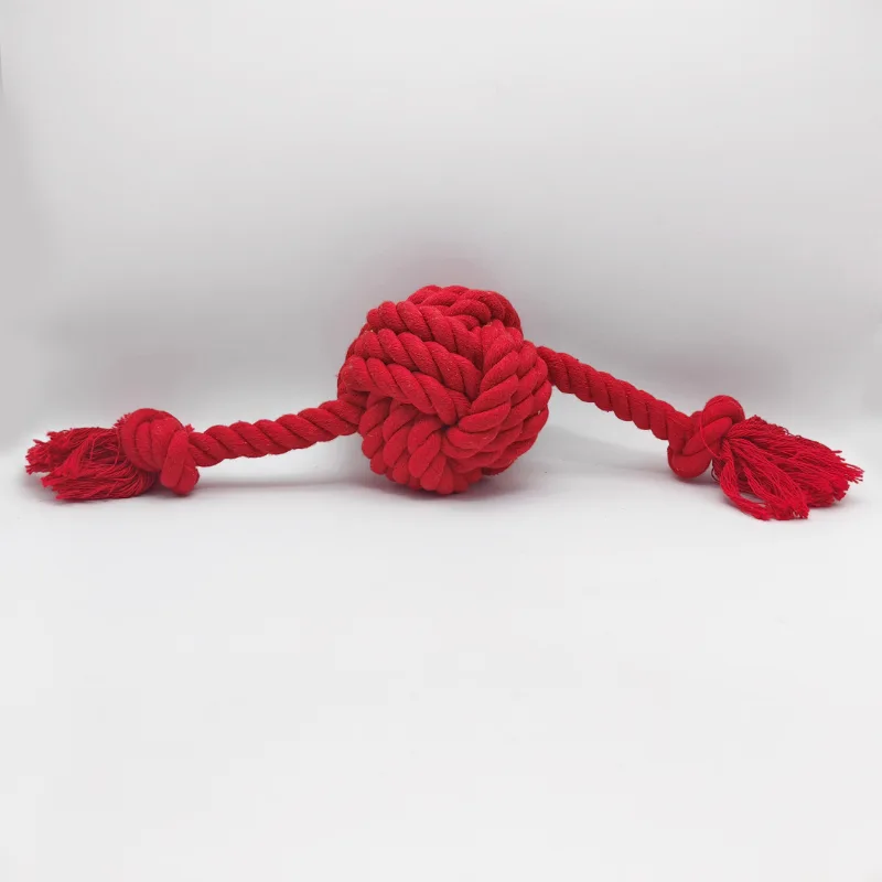 Among the competition, Heao Group,located in China takes the lead as a prominent manufacturer of braided rope dog toy.This rope toy is a captivating and interactive playmate designed to bring joy and dental care benefits to small and medium-sized dogs. This eye-catching toy features a pure red braided rope ball with two extended ropes, each ending with its own knot, allowing for easy gripping and endless fun for your furry companion. Let's explore the exceptional features of this top-quality braided rope toy!