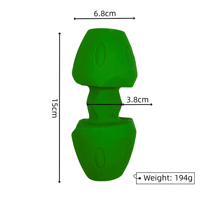 The toy's dumbbell shape exudes a sense of sophistication, making it visually appealing while offering excellent grip points for your dog to hold onto during play. Its smooth contours and well-balanced design make it a joy to interact with.