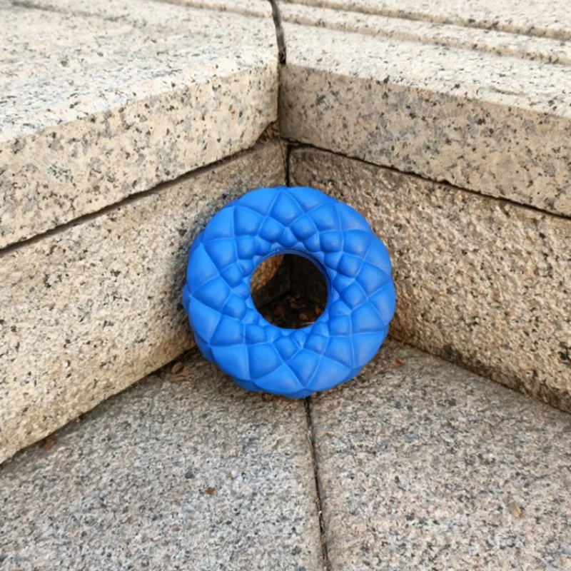 The toy offers a variety of play options, making it a versatile addition to your pup's toy collection. Your furry companion can enjoy a game of fetch by rolling the ring across the floor or play independently by working to get the treats out.