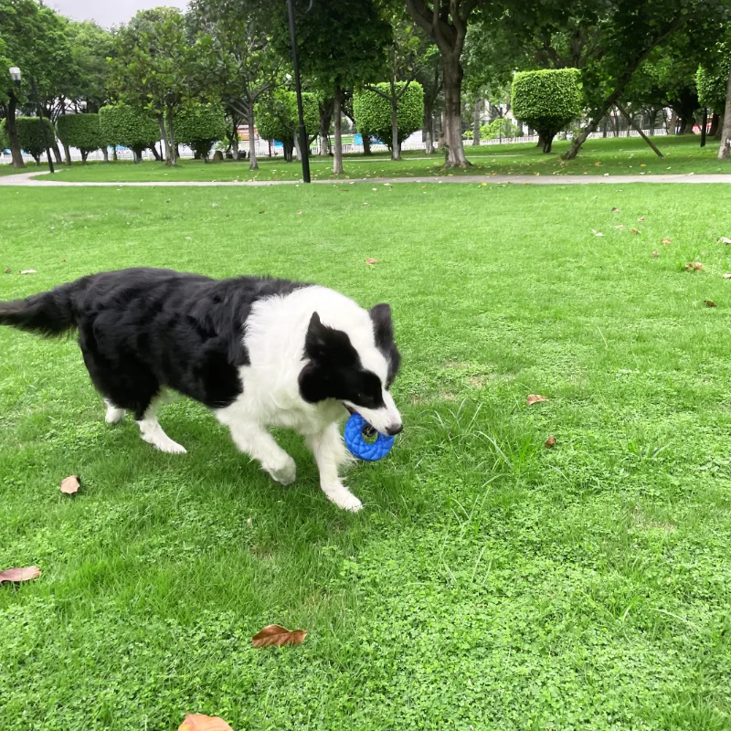 The toy's unique hollow center allows you to fill it with your dog's favorite treats and snacks. As your furry friend rolls, nudges, and chews on the toy, the treats inside become accessible, providing a fun and rewarding experience.