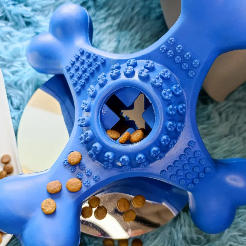 At the center of the cross, there is a strategically placed cavity that serves as a treat dispenser. This feature adds an exciting element of reward during playtime, as you can fill it with your dog's favorite treats or snacks. As your pup interacts with the toy, they'll be delighted by the occasional surprise of tasty treats falling out, encouraging them to engage in stimulating play.
