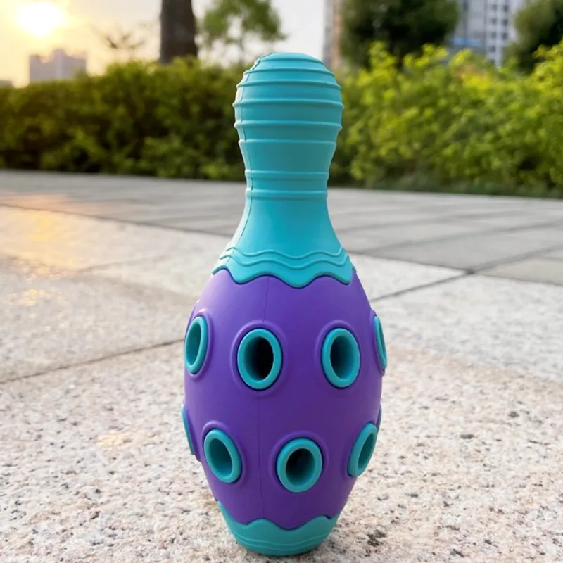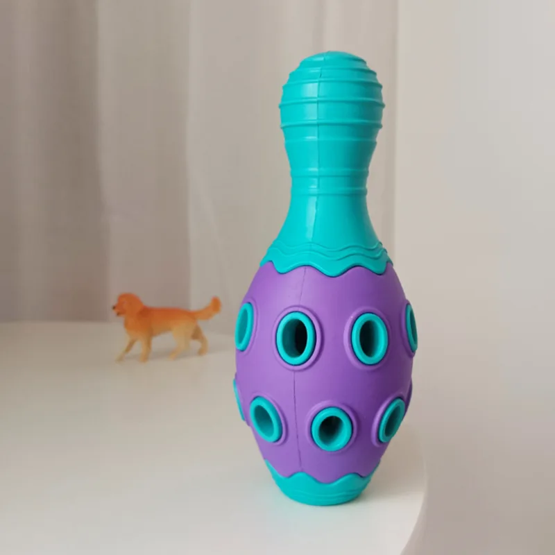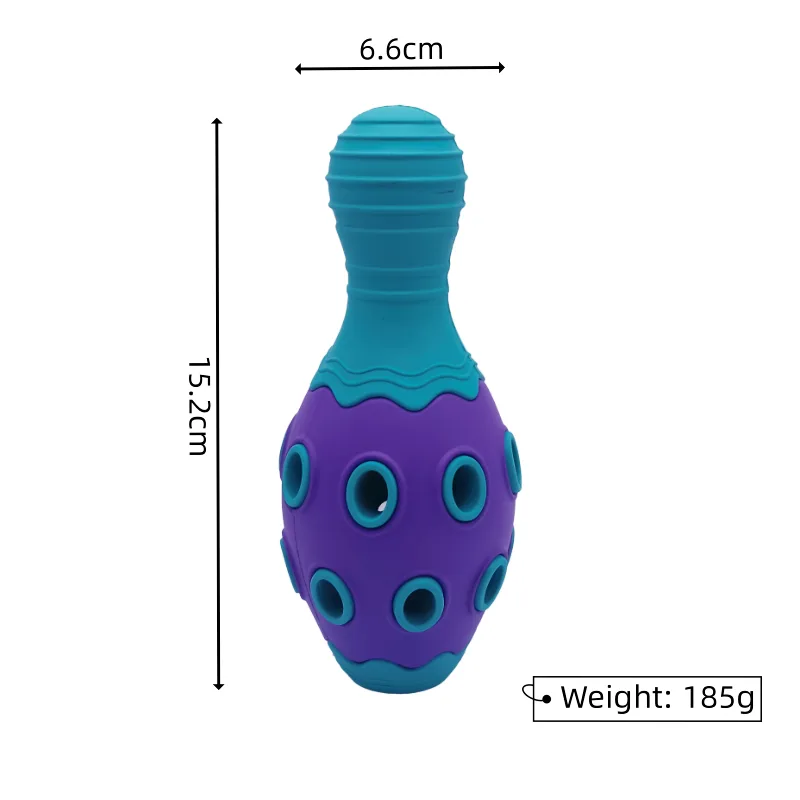 The overall design, inspired by a bowling ball, provides a perfect shape for dogs to grab and carry the toy comfortably. Its spherical form allows for easy grip, even for smaller mouths, making it suitable for dogs of all sizes and breeds.