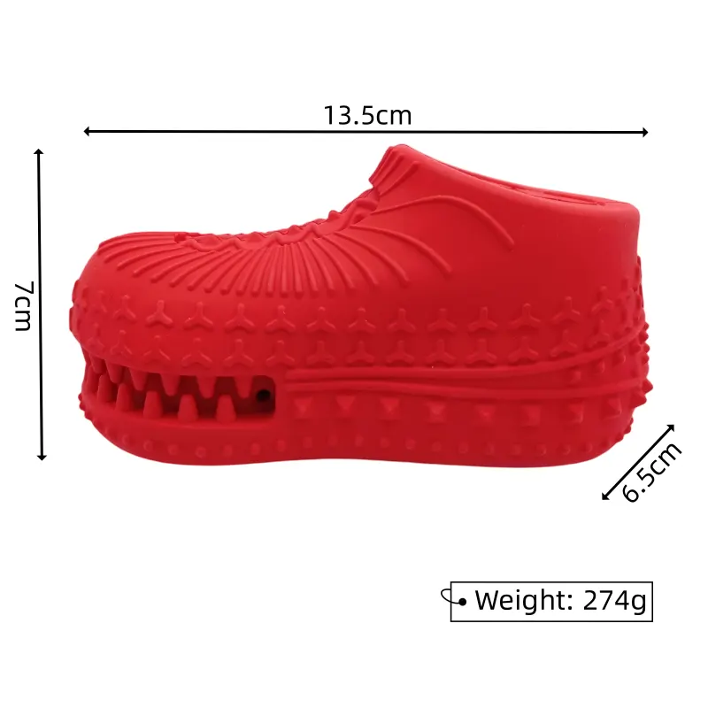 The durable dog chew toy is thoughtfully crafted in the shape of a cute mini shoe, complete with intricate details and a special bulge on the front surface. This bulge acts as a hidden treat compartment, allowing you to stuff it with your dog's favorite treats or spread peanut butter, irresistibly attracting them to chew and explore.