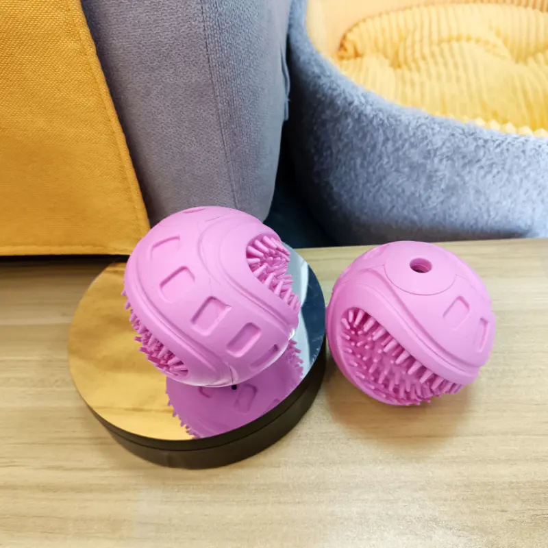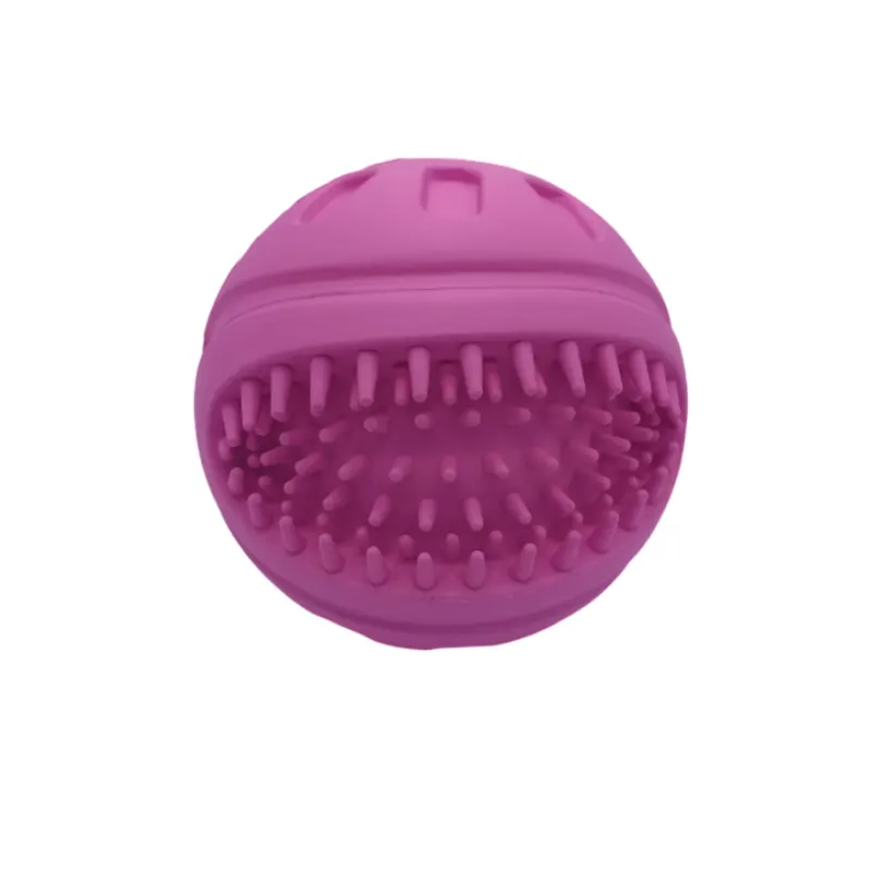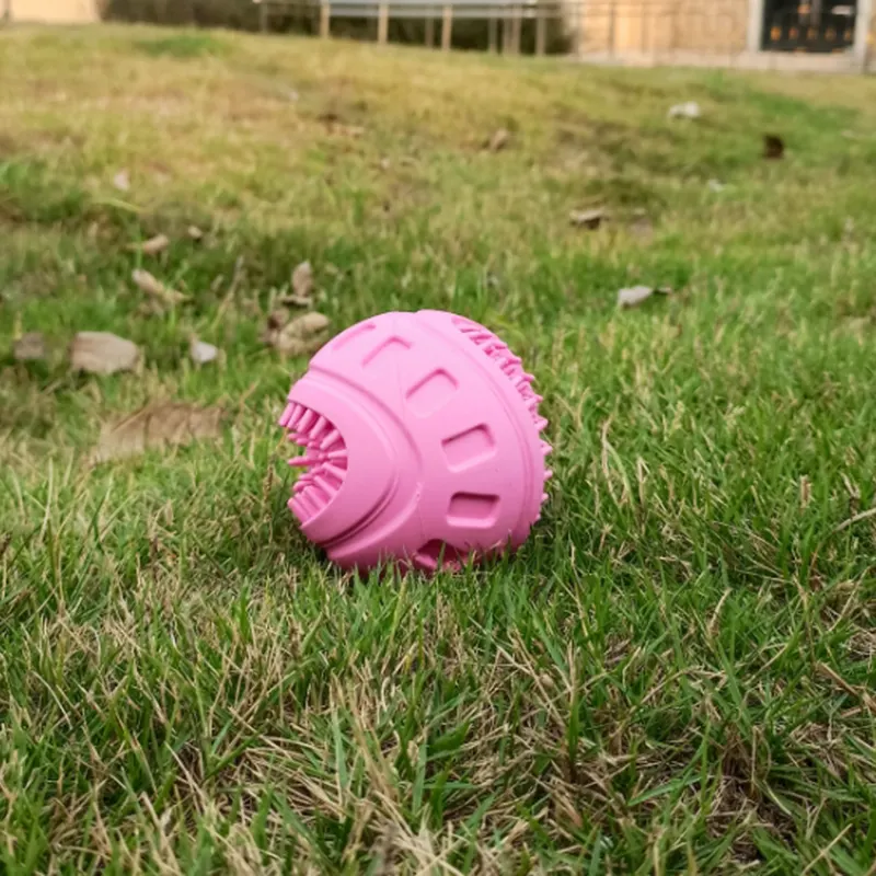 Keeping your dog's dental health in mind, this toy is an excellent addition to your pet's oral care routine. The rubber bristles on the surface act as a natural toothbrush, gently massaging their gums and removing plaque and tartar buildup as they gnaw and chew on the ball. This aids in promoting healthier teeth and fresher breath, reducing the risk of dental problems.