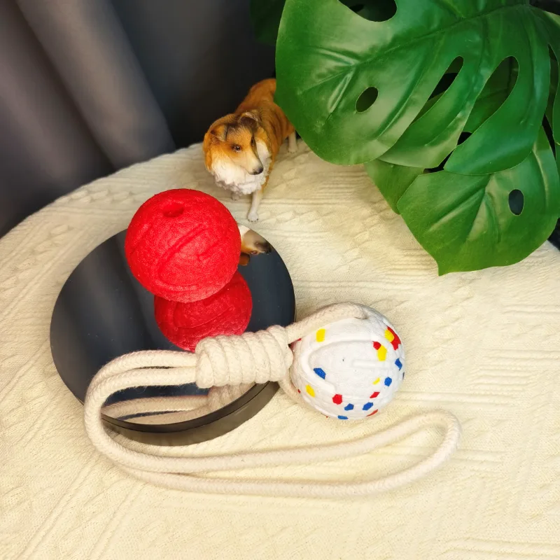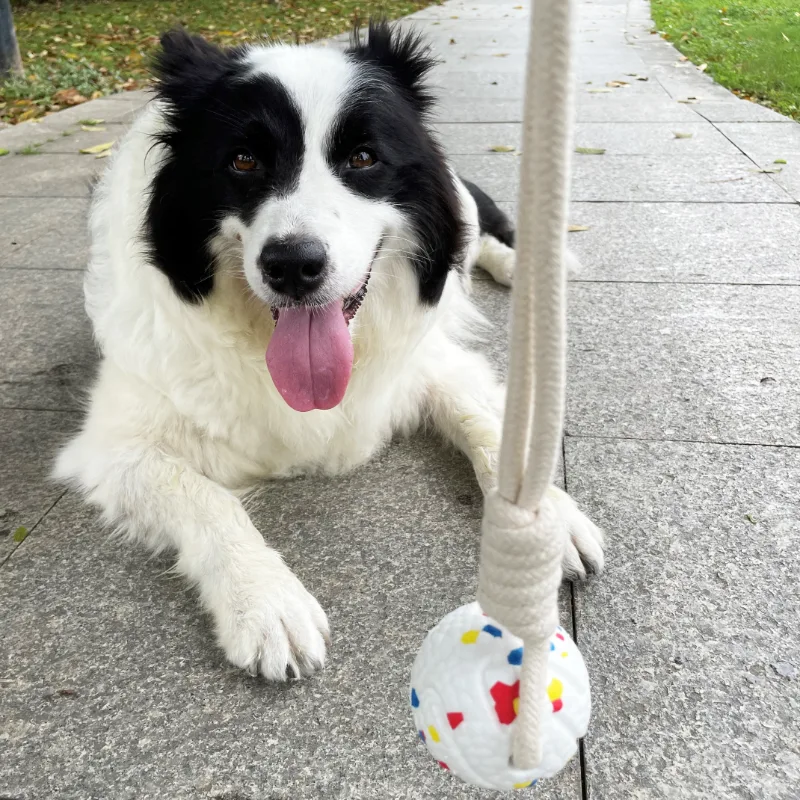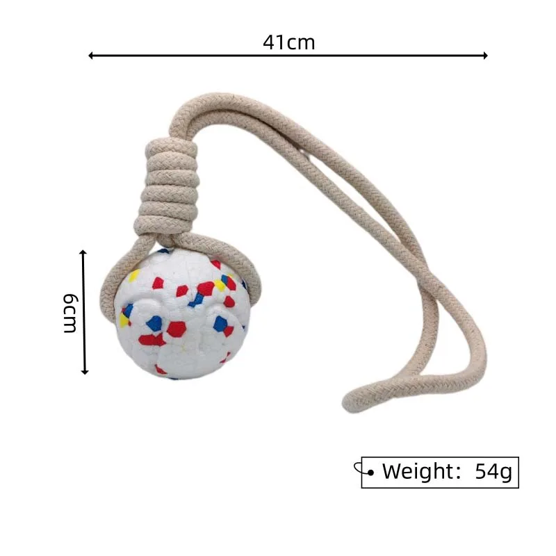 The ball is ingeniously connected to a sturdy hemp rope, providing an easy grip for you to play interactive games with your dog. The rope makes it convenient for you to throw, retrieve, and engage in fun tug-of-war sessions, strengthening the bond between you and your furry friend.