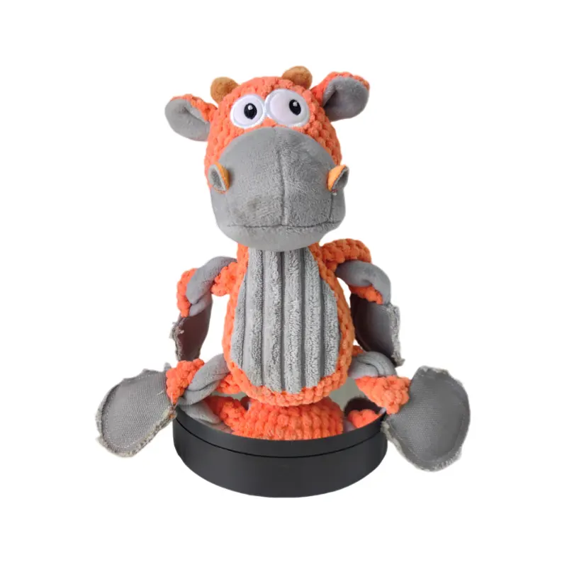 In summary, our plush squeaky dog toy is a delightful combination of cuteness and interactive features. With its endearing hippo design, crinkle ears, twisted rope limbs, and squeaky feet, this toy is tailor-made for puppies' enjoyment and companionship. Treat your young canine friend to this enchanting hippo toy, and witness the joy and happiness it brings during their playful moments!