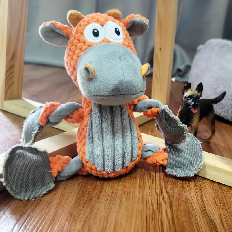 To enhance the play experience, the hippo's feet are fitted with squeakers. Gentle pressing or squeezing of the feet elicits delightful squeaky sounds, sparking your puppy's curiosity and adding playfulness to their day.