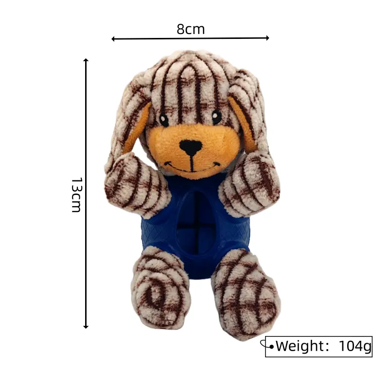 In conclusion, our rubber and plush puppy treat dog toy combines creativity, functionality, and fun into one adorable package. With its innovative materials, interactive treat-hiding feature, and charming design, this toy is sure to capture the heart of your furry companion. Treat your pup to this delightful puppy with a surprise twist, and watch as they wag their tail with excitement during playtime!