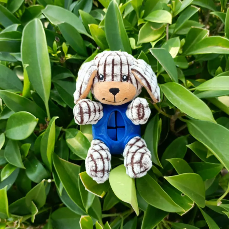 This puppy treats dog chew toy features the charming shape of a small puppy with cute rabbit-like head and limbs made from soft plush fabric. The plush details add a touch of coziness and cuteness, making the toy an instant favorite for your furry friend.