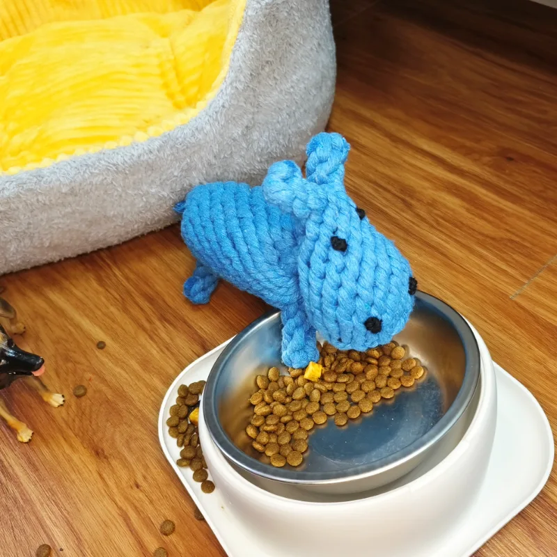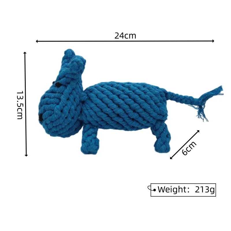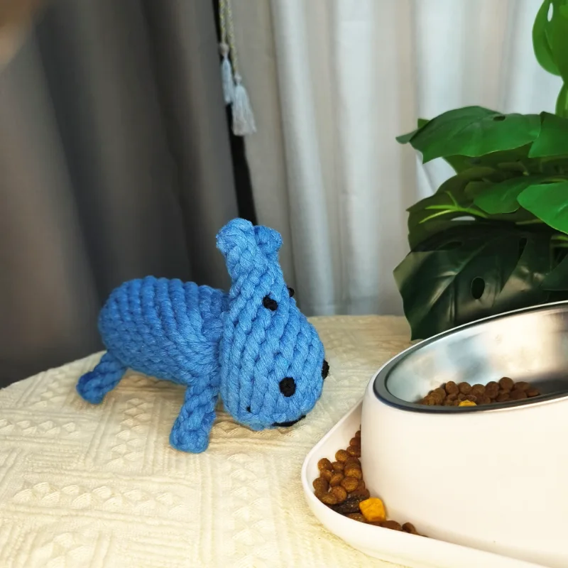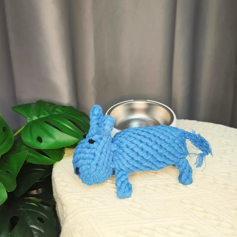 The recycled chewing rope toy is a perfect choice for conscious pet owners who seek to provide their dogs with an enjoyable, environmentally friendly, and safe playtime experience. Its rhino shape adds an element of excitement, while the dental-cleaning benefits and softness make it a cherished companion for your furry friend.
