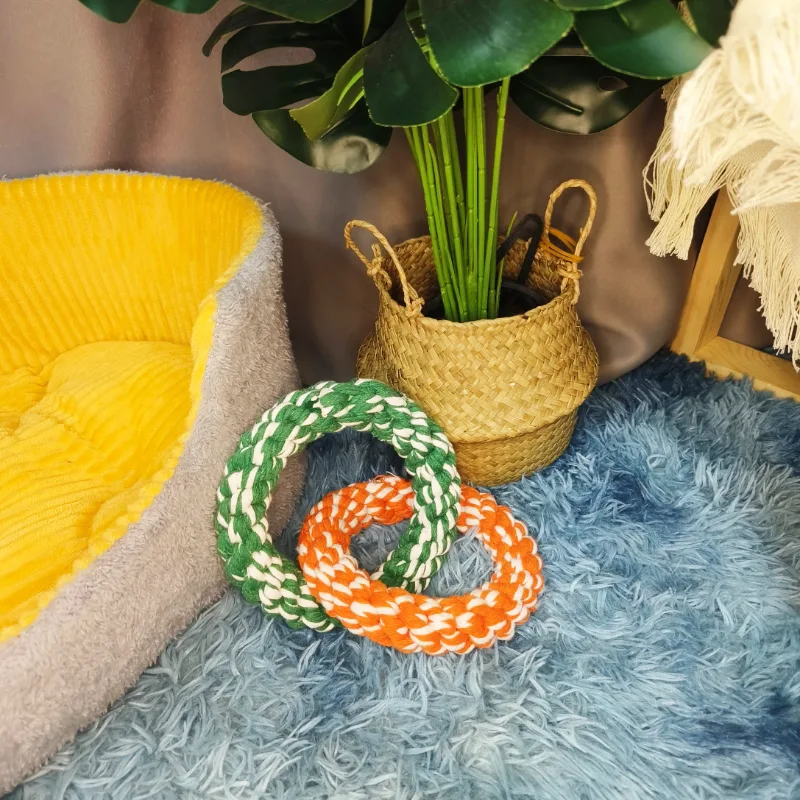 As a prominent figure in the dog toy market, HEAO factory sets itself apart by offering customizable recycled tug rope dog toy options, ensuring every pet receives a toy that complements their playstyle and interests. This interactive tug dog toy features two interlocking, classic rope ring toys—one for you to hold onto and one for your pup to chomp down on.