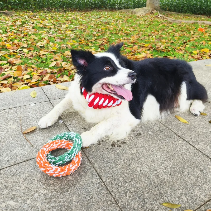In conclusion, the recycled tug rope dog toy is the perfect combination of fun, dental care, and eco-friendliness. With its unique design, dental-cleaning benefits, and emphasis on safety and shared play, this toy is sure to become a staple in your dog's playtime activities.
