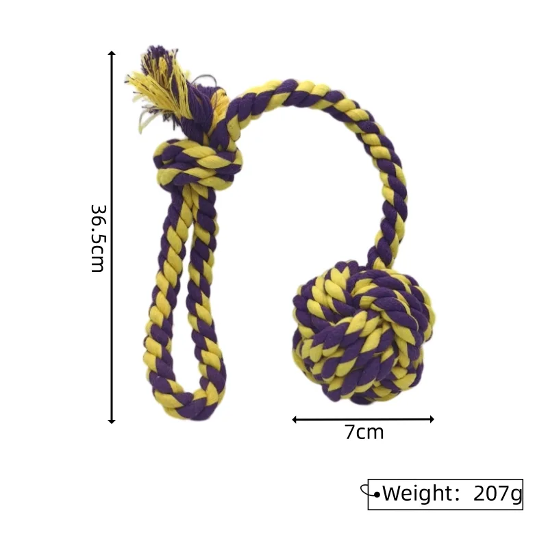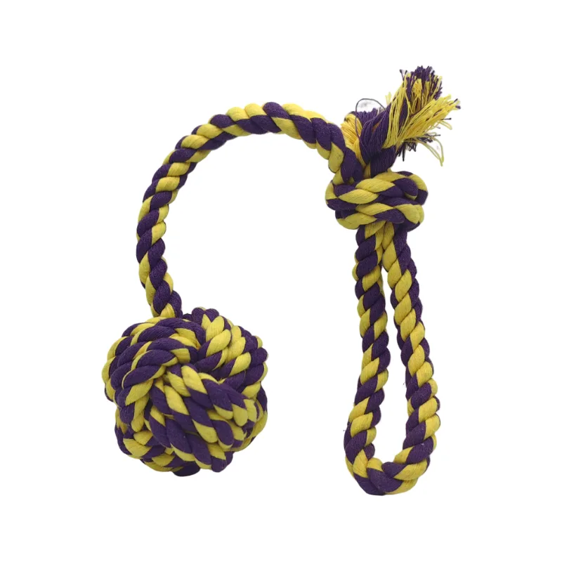 The rope ball toy is perfect for bonding and interaction between owners and their furry friends. With its easy-to-hold handle loop and ball-shaped knot, you can enjoy endless hours of play, keeping your dog entertained and active.