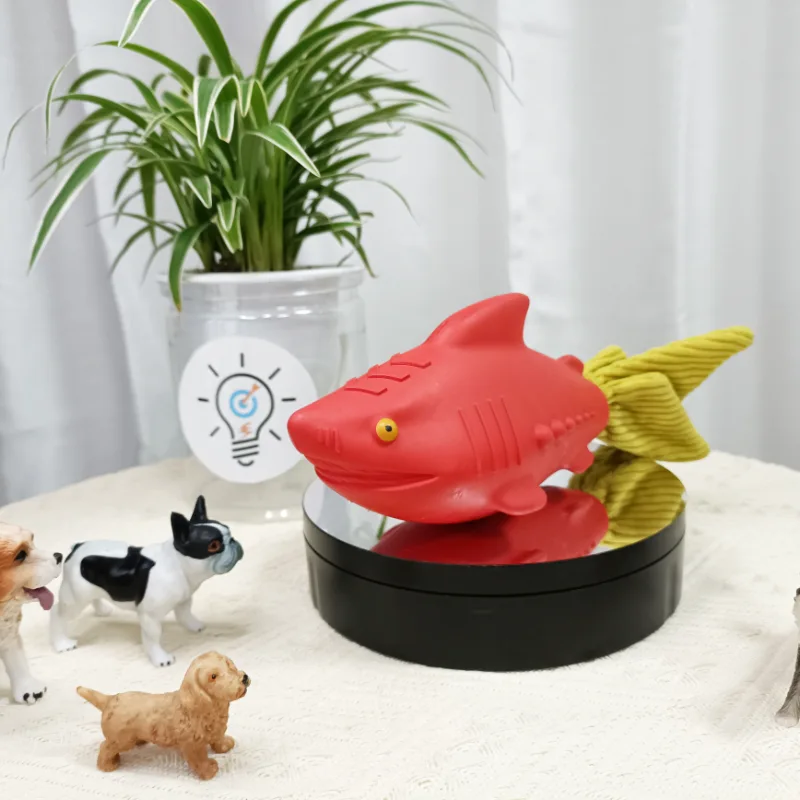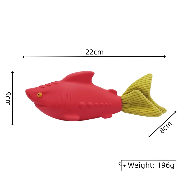 The body of the shark is crafted from high-quality, non-toxic natural rubber, making it safe and robust for dogs with strong chewing forces. The durable rubber construction ensures the toy can withstand rough play, making it ideal for dogs of all sizes and breeds.