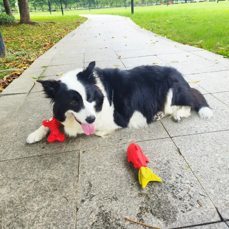 The tough squeaky toy features a captivating and lifelike shark shape, complete with realistic details and vibrant colors that spark your dog's curiosity. The design is not only visually appealing but also enhances the toy's play value and interactive features.