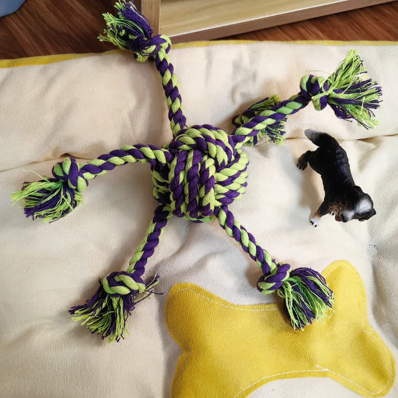 As your pet chews on the soft rope toy, it aids in cleaning their teeth by removing plaque and debris. This gentle abrasion action helps protect their teeth from tartar buildup and potential dental issues.The cotton material used in our rope toy is non-abrasive and safe for your pet's teeth and gums. It offers a comfortable chewing experience without causing any harm or discomfort.Despite its softness, our cotton rope toy is designed to withstand regular chewing. Its durable construction ensures it remains intact over time, providing long-lasting oral care and entertainment for your furry friend.