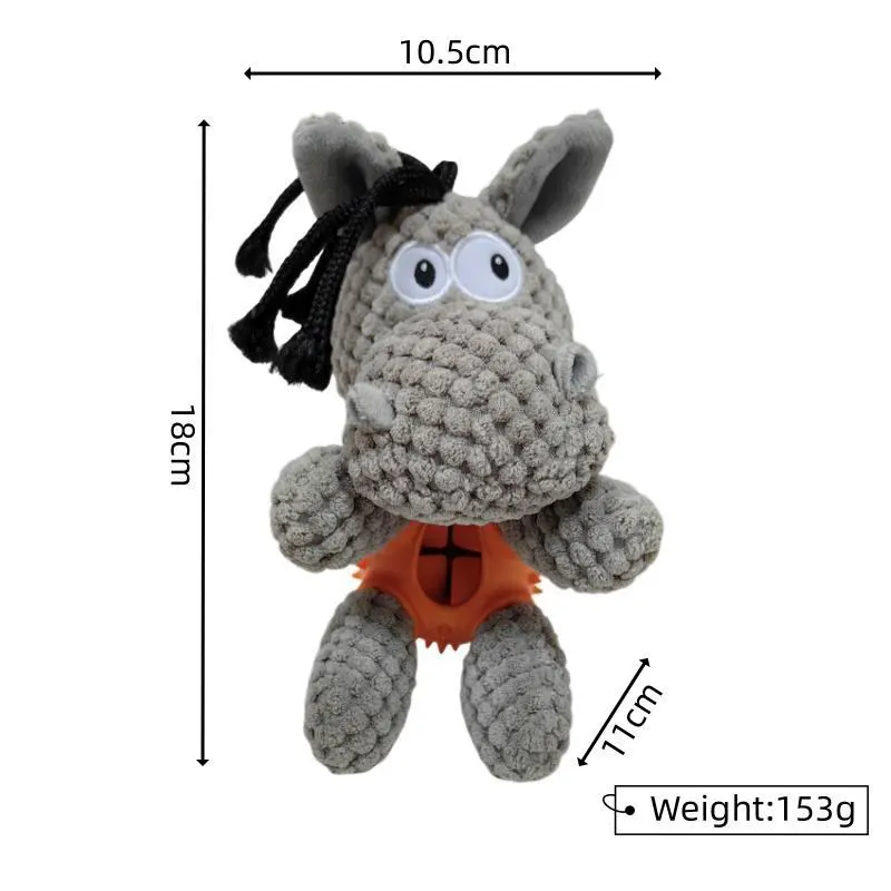 The body of the rhino is skillfully crafted from durable rubber material, providing a sturdy surface for your dog's playful interactions. Within the rubber body, there is a hidden treat dispenser, designed to hold small treats or kibble. As your dog plays and engages with the toy, they will be rewarded with tasty treats, making playtime even more enticing and enjoyable.
