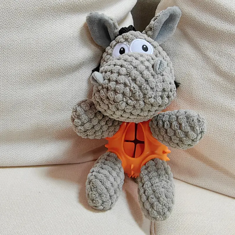 The combination of plush and rubber materials adds a layer of excitement to play. Your pup can chew and nibble on the plush limbs and head, while also exploring the rubber body for treats. This interactive play not only keeps them physically active but also mentally stimulated as they work to retrieve the hidden rewards.