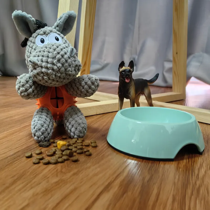 The sturdy toy showcases a creative blend of plush and rubber, offering versatility and engagement in a single toy. Its innovative design ensures that it stands out as a unique and exciting addition to your pup's playtime collection. A Tail-Wagging Marvel of Playtime: Our sturdy plush dog toy brings together the best of both worlds - combining the cuddly charm of plush with the interactive element of rubber and treat rewards. With its adorable rhino design, durable construction, and engaging treat-dispensing feature, this toy will surely become your little canine's favorite playmate. Treat your furry friend to this enchanting rhino toy, and watch as they wag their tail with joy and delight during their playtime adventures!
