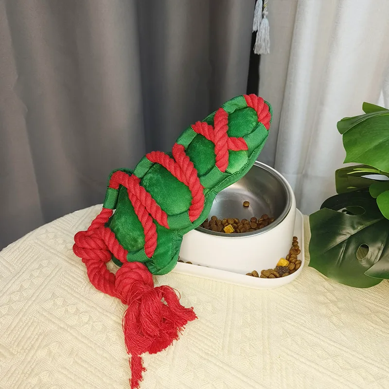 This Christmas-themed toy invites your dog to partake in joyous and playful moments during the holiday season. The combination of plush and ropes offers a unique tactile experience, keeping your dog happily engaged in their holiday playtime.